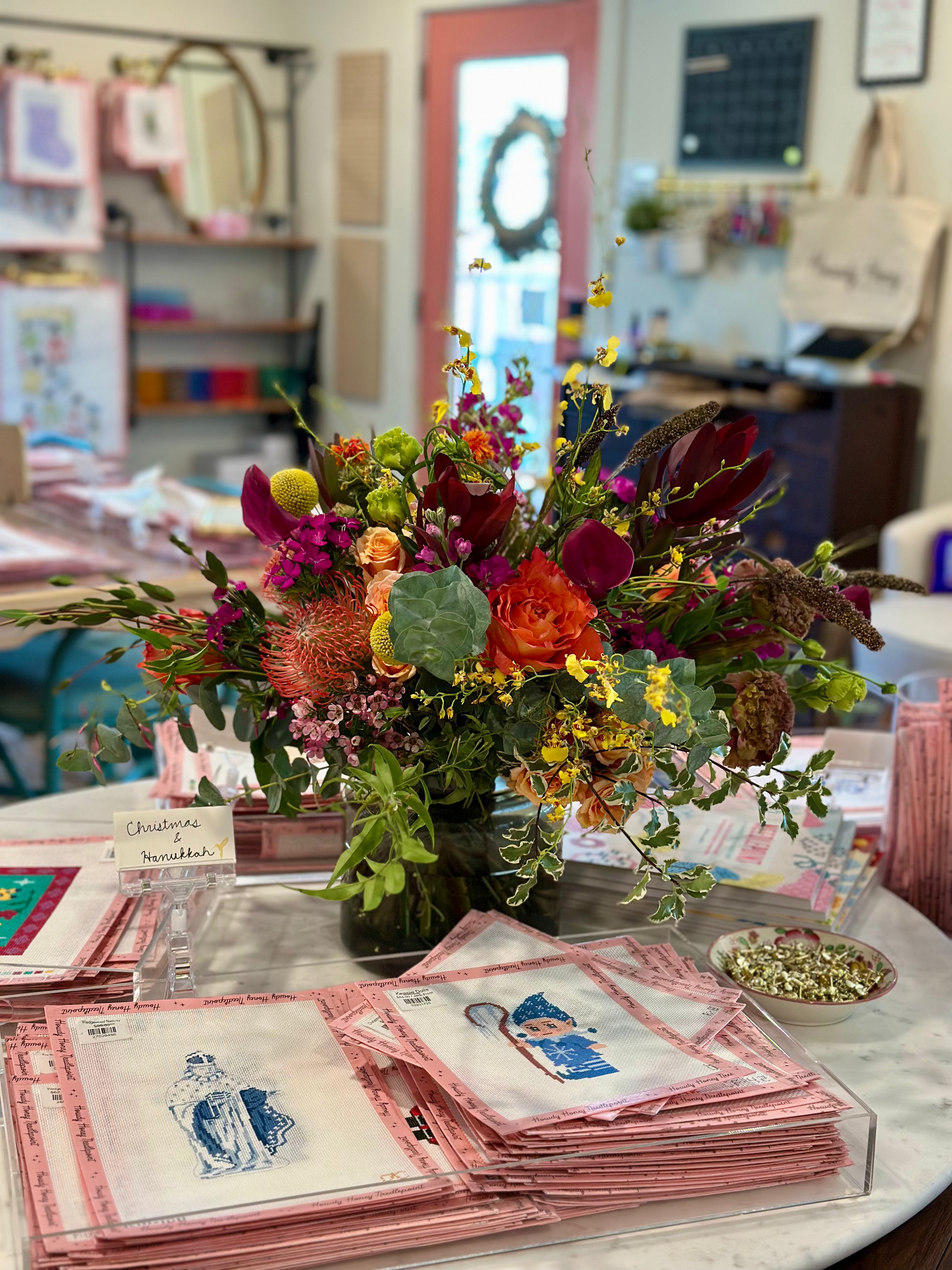 Learn to needlepoint or a decorative stitch in one of our small group classes with hands on instruction!